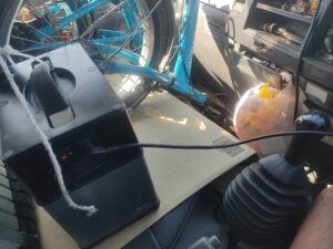 運転席にバッテリーを置き、走行充電に切り替えます。