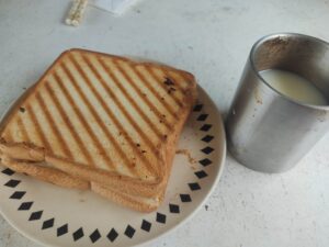 朝食を食べ
