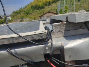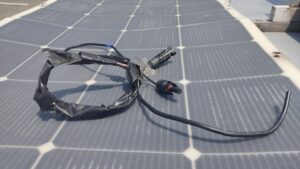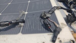 そして屋根に上り、ソーラーパネルと繋いでいるコネクターを