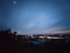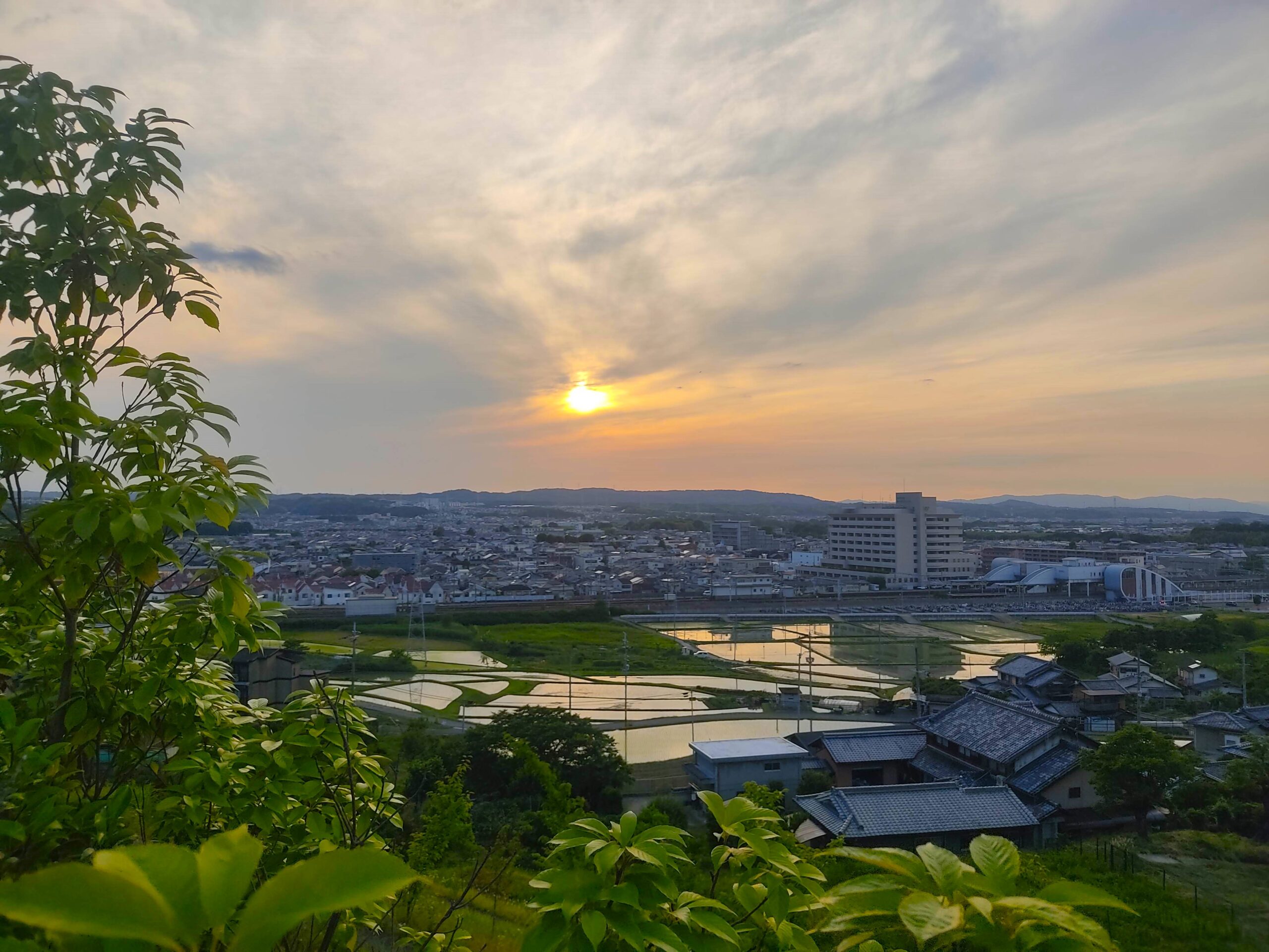 京都なのか大阪なのか兵庫なのかわからないけど、そっち方面の山に日が落ちていきます。