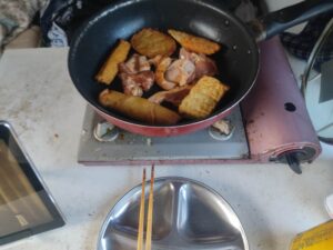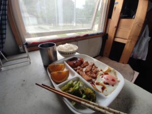 昼食を食べ、