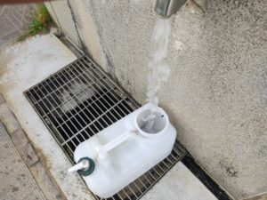 今朝、木津城址公園で水を入れてきて、