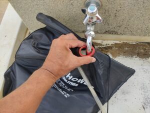 倒してホースの先を引っかけて、