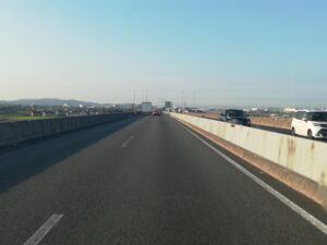 信号が一つもないし、ノンストップで90キロくらいでビュンビュンとばします。
