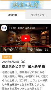 明日28日(金)夜10:54分からのテレビ東京の「風景の足跡」で放送されるようです。