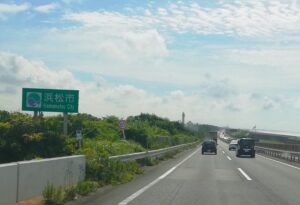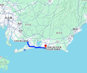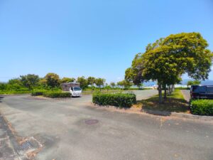 しばらく走ると、今日の宿営場所の中田島砂丘西駐車場に到着です。