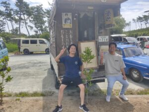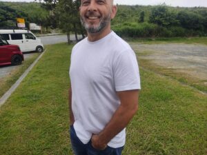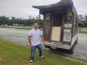 ブラジル人の奥さんと30年前に来日し、奥さんはフィットネスジムを経営し、おとうさんはトレーナーをやって、カメラマンの仕事もこなし、これから浜辺でウェディングの撮影をするのだそうです。
