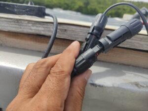 コンビニで受け取ったコードのコネクターとパネルのコネクターを繋ぎます。