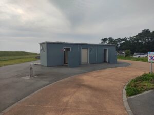航空写真にはトイレが写っていないので新しい公園なのでしょう。