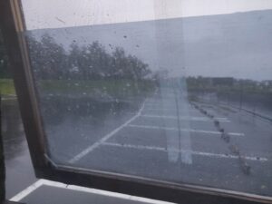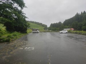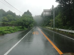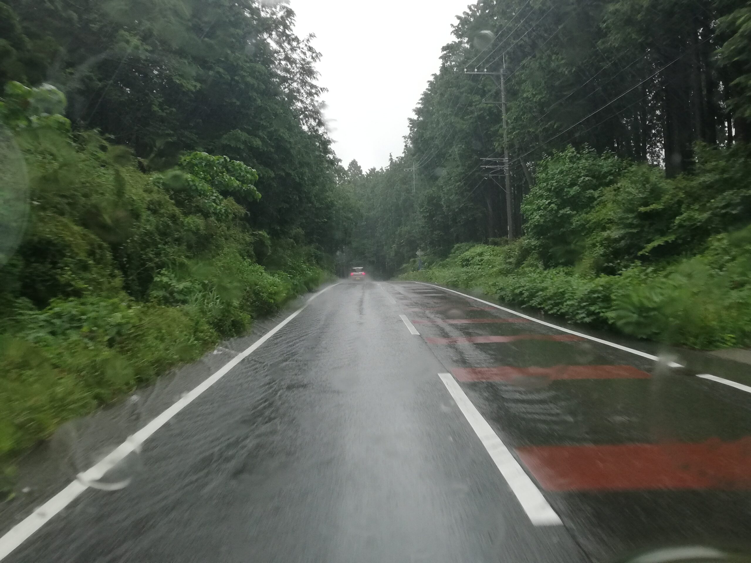 車を一旦停めて、びしょ濡れになりながら四駆に切り替えます。