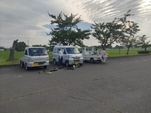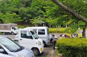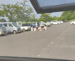 公園の草刈りのおとうさん、おかあさんが休憩をしていたのです。