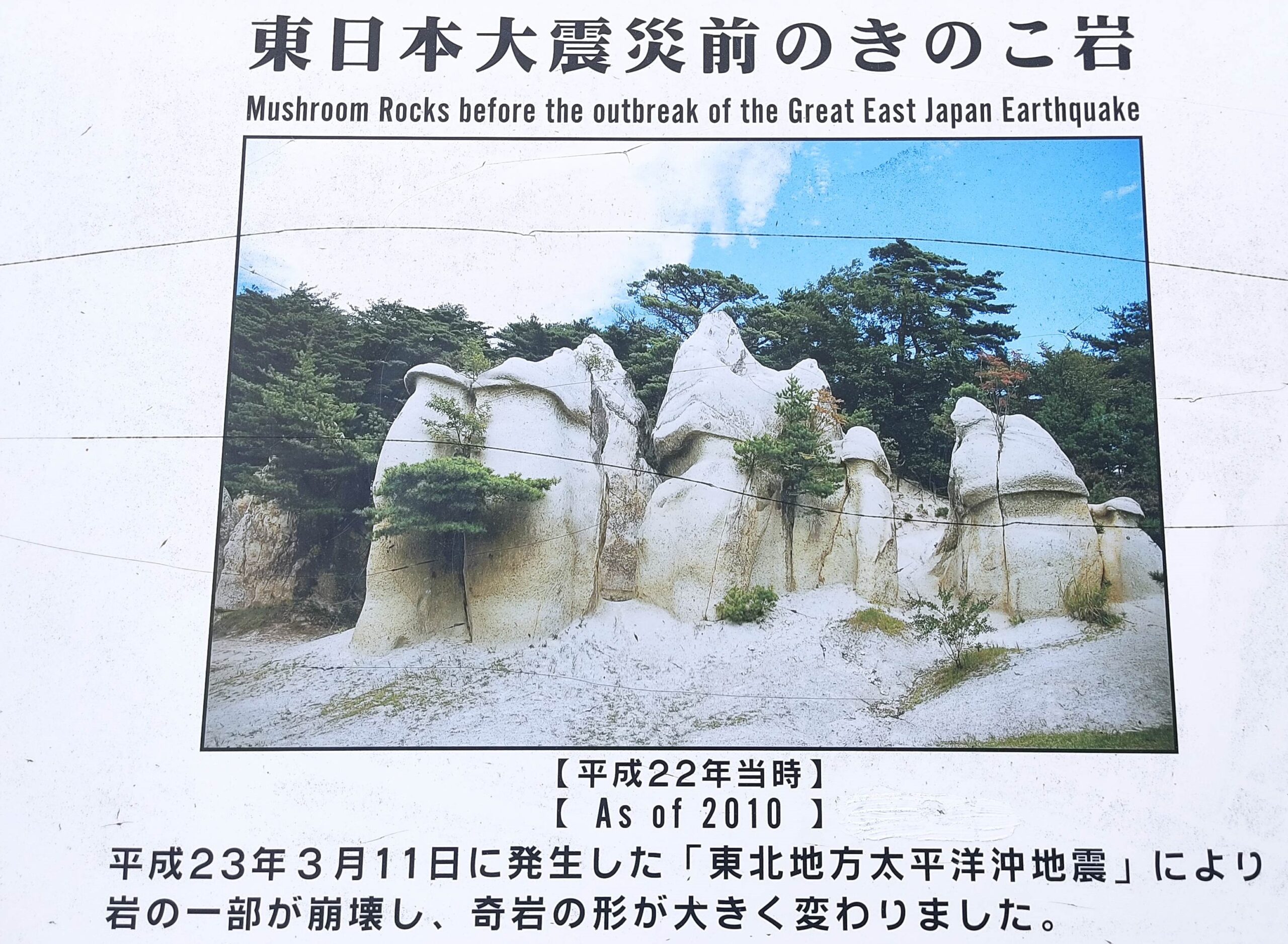 震災前のきのこ岩がこちら。