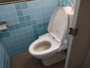 外に出ると、真っ暗かと思いましたがトイレのところの電気が点いてます。