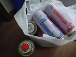 旅先で捨てられずに物置に溜まっていたカセットガスも出します。