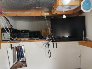 テレビの向こう側のロフトは物置にしているのですが、テレビがあった時には物が落ちなかったのですが、そのままだと落下してしまうので何とかしなければなりません。