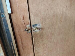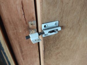 まずは後ろの物入れのドアの器具が壊れてしまったので、