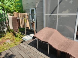 まずは、旅先でテキトーに洗っていた食器類をすべて下ろし家できれいに洗い流します。