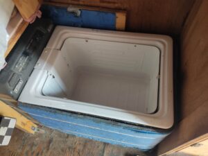 冷蔵庫の中の物をすべて出して蓋を開けてきれいにし、そのまま乾燥させます。