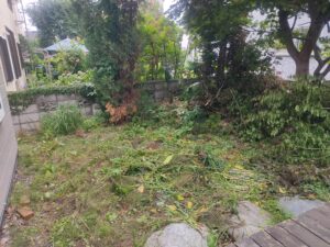 切った木は面倒なのでそのまま地面に放っておきます。