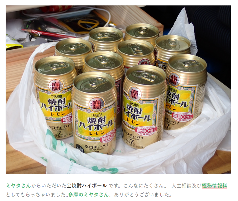 おそらく横須賀オヤジがルスツで多摩のおとうさんに会った時、しゅんめいさんの今後のスケジュールをこの酎ハイと引き換えに売ったのでしょう。