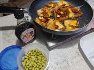 家から持ってきた秘伝豆といっしょに食べて腹ごしらえをし