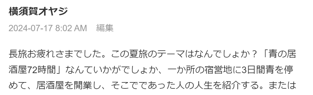 奇しくも、前回の旅が終わった時に横須賀オヤジからこんなコメントをいただいたのですが