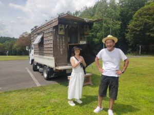 茨城の大洗から苫小牧までフェリーで来て、8月終わり頃まで北海道を楽しむのだそうです。