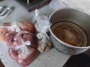 今回の食材は、鶏肉、豚肉、笹かまぼこ、ホタテです。