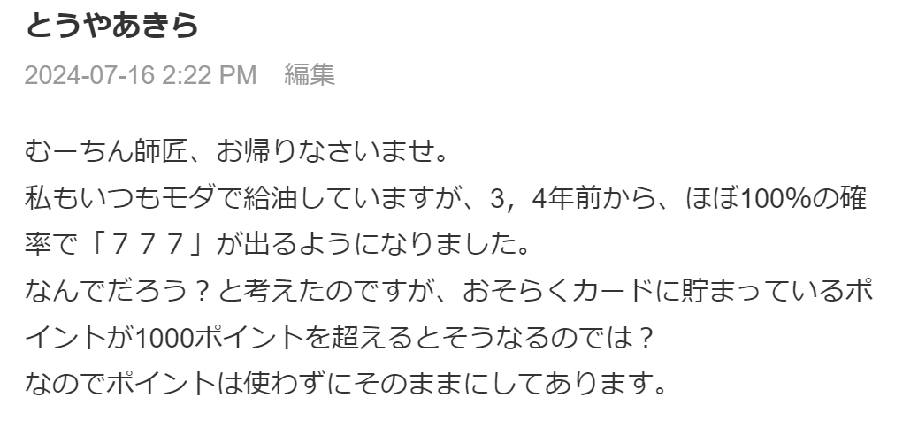 330円ごとに1ポイントが付与されるので、モダで330,000円給油するとポイントが1000貯まりますよ!!