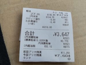 支出:4,140円(スーパー)+3,647円(軽油)=7,787円