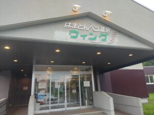 坂を上ると、はまとんべつ温泉ウィングに到着です。