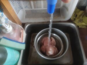 燻製の食材を冷蔵庫から出して軽く水洗いし、
