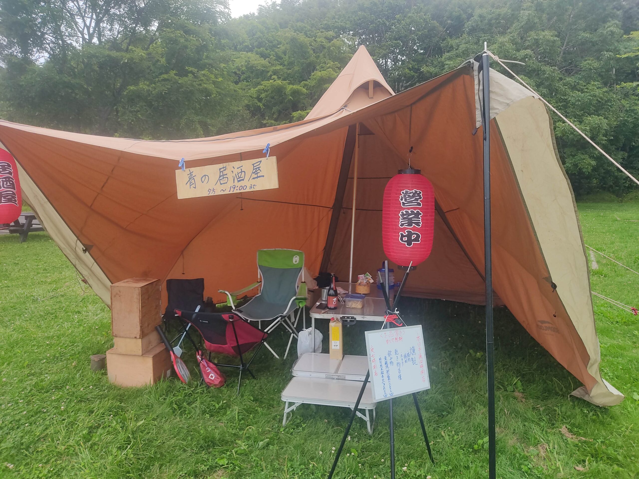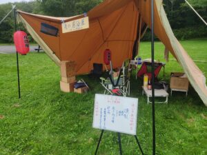 お客さんが殺到しても対応できるようにテントを広い場所に移動し、