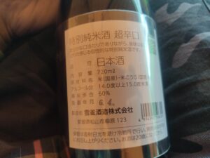 しゅんめいさんからいただいた超辛口特別純米酒です。