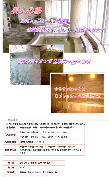 この泉質はずばりナトリウム系で神経痛とか冷え性とか、あとはやけどなどにも効きそうです。
