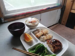 朝食を食べ