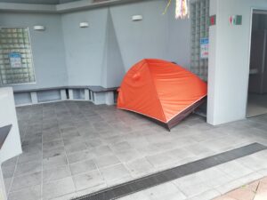 トイレに行くとテントが。