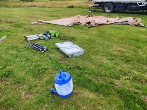 せっかく立てて水まで汲んできたのに撤収します。