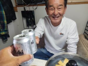 池田さんが買ってきてくれたビールで乾杯です。