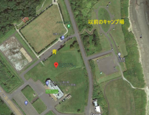 このキャンプ場は以前は海側にあったのですが、閉鎖されて