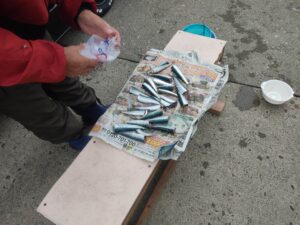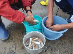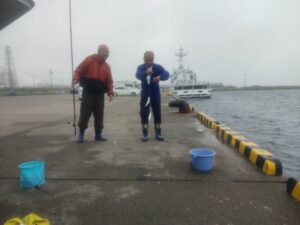 亜矢ちゃんおとうさんはチカやイワシを次々に上げてます。
