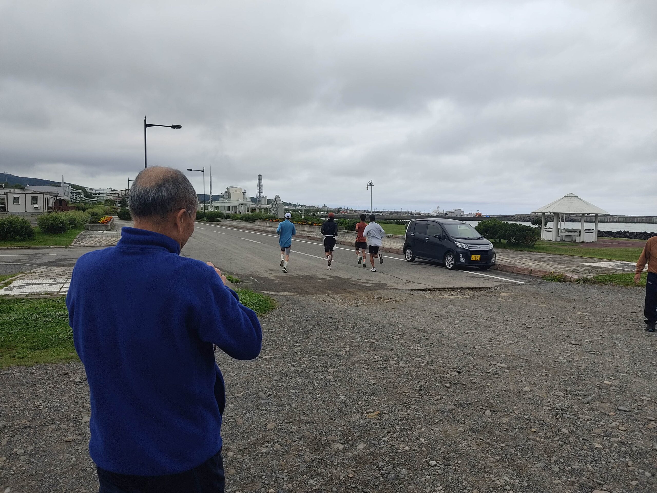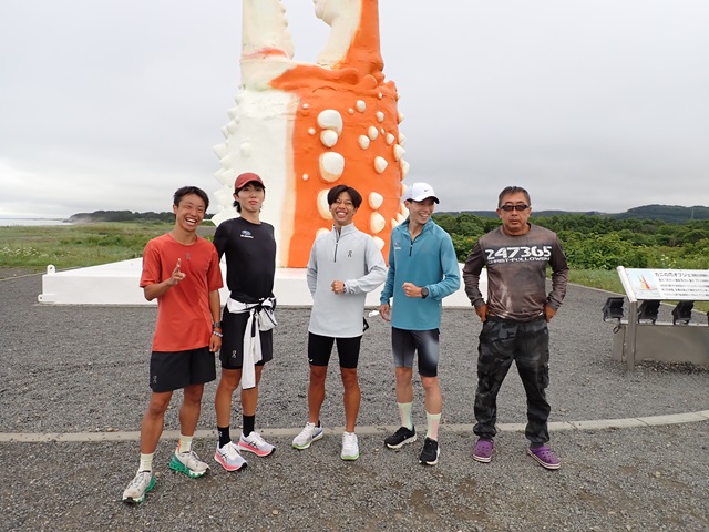 ふと窓の外を見ると、若いランナー4人がカニの爪のところに走ってきました。