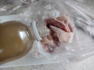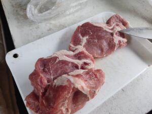 今夜のつまみは亜矢おとうさんの差し入れの生ラム肉とつくね。