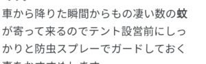 たぶんこの悪天候で芝地の下に水が溜まり、キャンプ場全体が蚊の繁殖地になっているのでしょう。