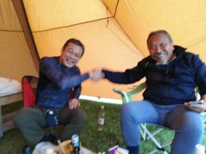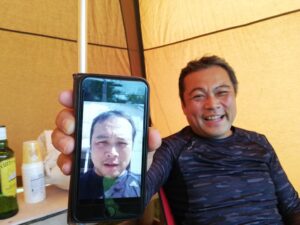 青の居酒屋の設営の準備をしているとバイカーの方がやってきました。