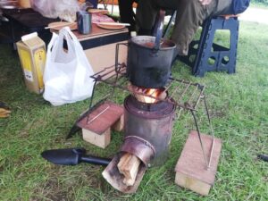 あまりに寒いのでロケットスト―ブでお湯を沸かします。