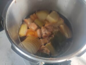 醤油、みりん、砂糖、料理酒を入れ20分圧を掛ければ出来上がりです。