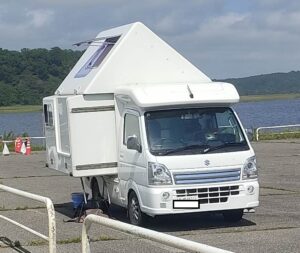 この軽キャンピングカーは走っている時と停まっている時の形が違うのです。