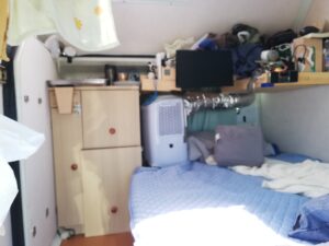 だから軽なのに室内で立てるし、横向きにも寝られるのです。