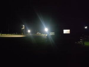 外にキャンピングカーが停まりました。